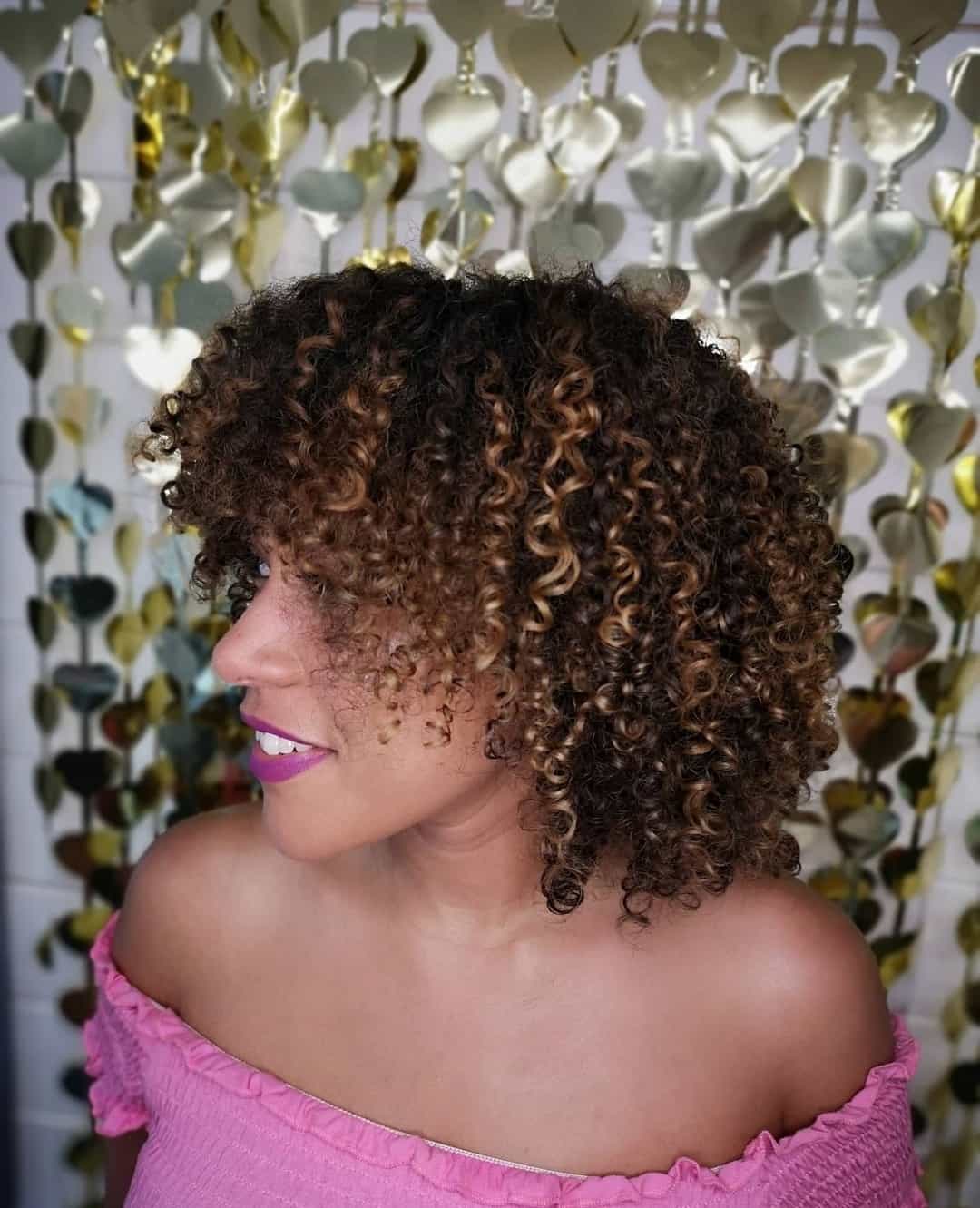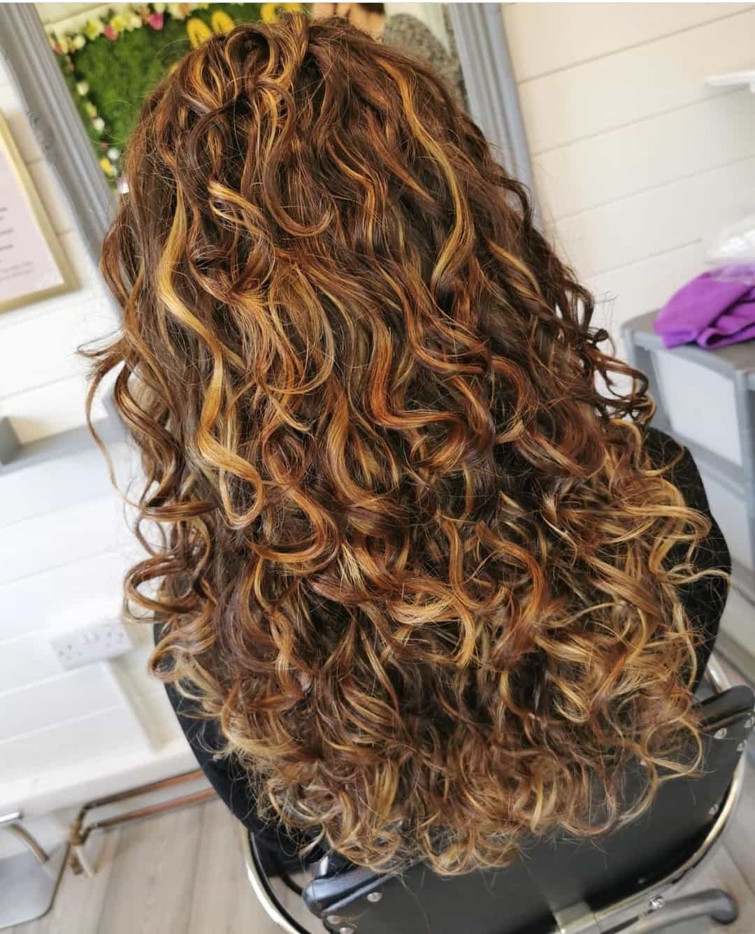 Open air colour involves the dye being applied free-hand, directly on to the hair, and the hair is then left without any foils or cover to allow it to absorb in ‘open air’. Your hairdresser will often use the sweeping technique when painting your hair unlike traditional highlights where the dye is applied in straight lines. This technique is suitable for those who don’t wish for regular colour upkeep and don’t dye their hair often. It’s a more natural method of adding some colour to your curls.